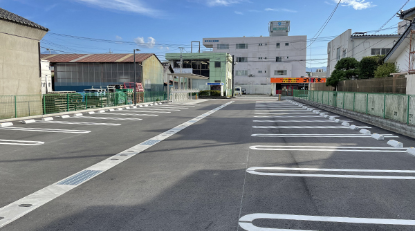 最大42台まで駐車できる、広い駐車場を完備。雨の日やお買い物ついでのご利用にも便利です。駐車場と店舗も近いので重い洗濯物を運ぶのも簡単です。