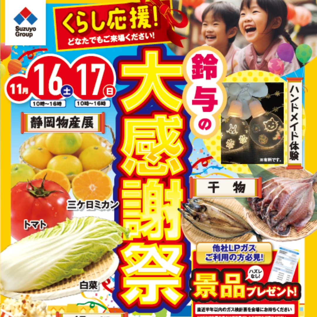 11月16日(土)・17日(日)の2日間、鈴与商事 甲府支店ショールームにて、『鈴与の大感謝祭』を開催いたします。 当日…