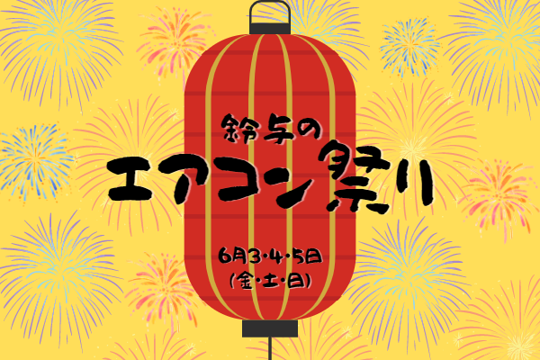 6月3・4・5日(金・土・日)10:00~17:00 コインランドリーに併設するショールームにて 鈴与のエアコン祭りを開…